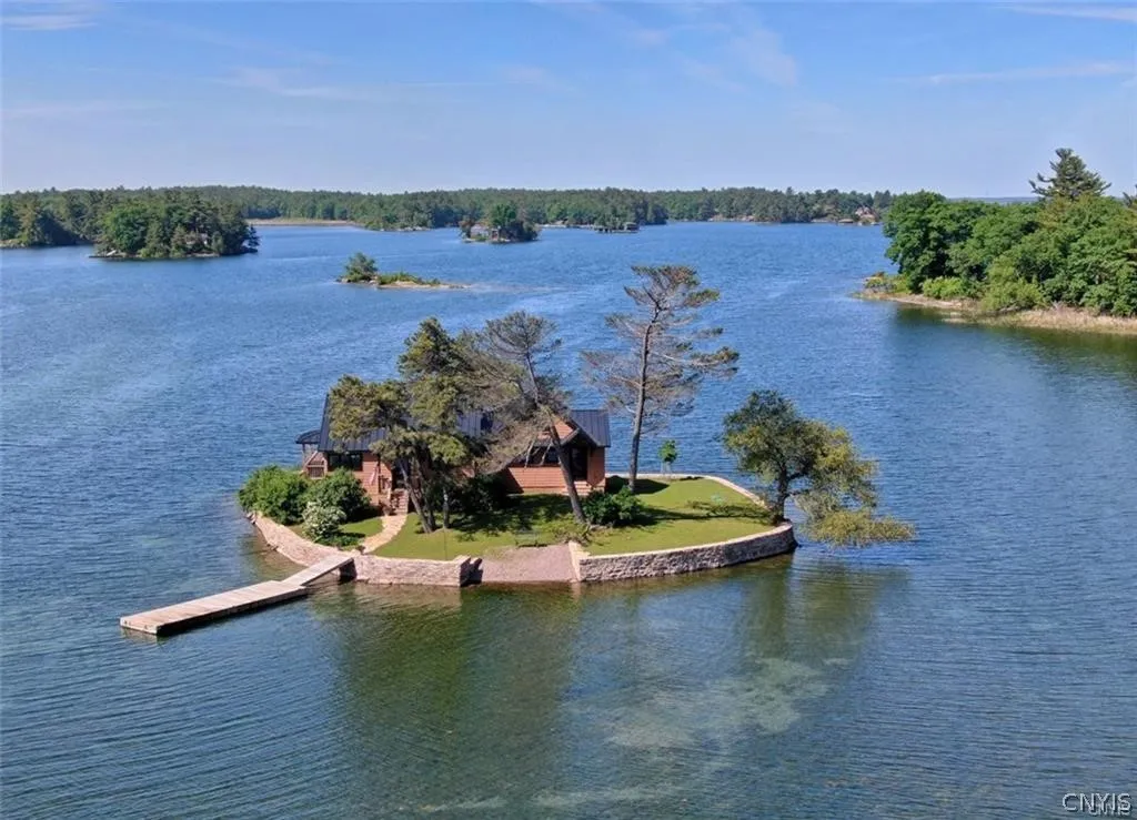 PRIVATE ISLAND!-New custom contemporary cottage (3BR/1.5BA) is situated on a 1/4-acre island in the prestigious Chippewa Bay/1000 Islands area along the scenic St. Lawrence River. Views of the water & nature from every window including distant views of the freighters. Everything is new & high quality from top to bottom, maintenance free & fully turn-key including all new high-end furniture. The kitchen has all new SS appliances, custom-made hickory cabinetry, leather granite countertops & portable butcher block island. Open floor plan concept with vaulted pine T&G ceilings & Pergo flooring thru-out. Baths are spacious with granite vanities & the master bath has a beautiful walk-in ceramic tiled shower. Also includes sleeping loft & laundry room. The exterior includes a standing seam roof, Marvin windows, covered porch with patio furniture & open deck area to enjoy the sun & water. New 400 ft. native stone seawall surrounds the entire island, new high-capacity state-of-the-art designed septic system. One of the best fishing & boating areas around! NO WORK OR REPAIRS TO BE COMPLETED, JUST TIME TO ENJOY THE GOOD RIVER LIFE!! EASY ACCESS FOR EVEN THE MAINLAND PURCHASERS! $798,500.