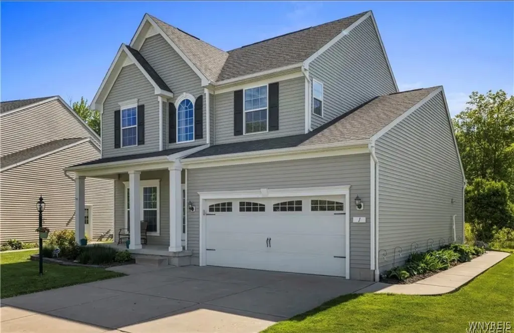 Welcome to this beautifully maintained home nestled in the highly sought-after Wheatfield Lakes community. From the moment you arrive, the inviting front porch sets the tone the perfect place to relax with a morning coffee or unwind in the evening while enjoying the peaceful neighborhood surroundings. Step inside to a bright and versatile front room that can easily serve as a formal dining room, family room, home office, or den a flexible space designed to fit your lifestyle. The cozy living room features beautiful flooring and a warm gas fireplace, creating a comfortable gathering space for family and friends. The kitchen is both stylish and functional, offering granite countertops, a center island, breakfast bar, and a spacious walk-in pantry tucked behind an elegant frosted glass door. Just off the kitchen, the sun-filled morning room provides the perfect spot for casual dining while overlooking the beautifully landscaped backyard. Upstairs, a generous loft area offers additional living space that can be used as a second family room, office, or recreation area. The primary suite provides a peaceful retreat with a walk-in closet and an en-suite bath featuring double sinks and a walk-in shower. 2 additional bedrooms and a full bath complete the 2nd floor. The finished basement adds even more living space, including a 4th bedroom with an egress window and closet, a large bonus or entertainment area, a separate laundry room, and a utility/storage room. The finished space adds 657 extra sq ft to the home. Additional highlights include a new hot water tank 2025, convenient mudroom entry from the garage, loft storage in the garage, and plenty of functional space throughout the home. Step outside and enjoy your own private outdoor retreat featuring a spacious deck with a retractable awning and a lower patio — perfect for entertaining guests, summer barbecues, or simply relaxing and enjoying the beautifully landscaped backyard. Located in the Niagara Wheatfield School District with Errick Road Elementary, this wonderful home offers comfort, space, and a welcoming neighborhood setting. Welcome to your new home!!
