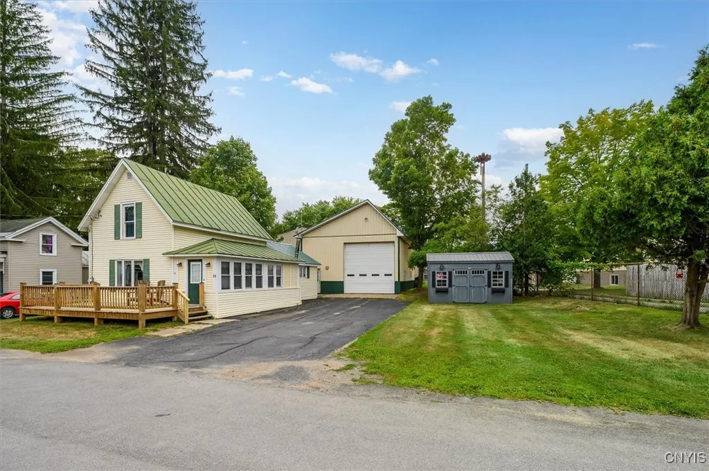 Welcome to this charming 3-bedroom, 1-bathroom home located in the heart of Poland, NY! Conveniently situated from all the village amenities while enjoying a peaceful neighborhood setting. Inside, you’ll find newly renovated bedrooms and bathroom, an open living area, brand-new flooring, on demand heat, public water, fiber optic internet, along with newer windows that bring in plenty of natural light. Outside, this property is a dream for storage and hobby space! The 30x40 garage features a 14-foot door, electric, infloor heat, and a spacious loft for extra storage. Plus, two additional sheds provide even more room for tools, toys, and equipment. Located in the Poland School District, this move-in-ready home is a rare find—don’t miss the chance to make it yours!