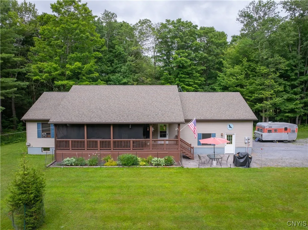 Welcome to 10165 Dustin Road, Remsen – A Peaceful Country Retreat on 5.74 Acres! Tucked away in the heart of the Adirondack foothills, this inviting 2006 ranch offers the perfect blend of modern comfort and rustic charm. With 1,176 sq ft of living space, this home is designed for easy one-level living while being surrounded by nature’s beauty. Step inside and you’ll find a warm, open layout with hardwood floors, a cozy living room filled with natural light, and a spacious kitchen featuring custom cabinetry, stainless steel appliances, and a large center island ideal for gathering with friends and family. The home boasts 3 bedrooms and 2 full bathrooms, including a private master suite with its own bathroom, providing comfort and convenience. A full basement offers endless potential—whether you envision it as additional living space, a workshop, or storage for all your Adirondack adventure gear. Outdoors, you’ll love the quiet privacy of nearly 6 acres of land with a mix of cleared yard and wooded backdrop. The property also features a two-stall attached garage with high ceilings, perfect for vehicles, tools, and recreational equipment. With its welcoming design, beautiful setting, and proximity to Adirondack outdoor recreation, this property is more than just a home—it’s a lifestyle. Whether you’re seeking a year-round residence, a country getaway, or a base camp for exploring Upstate New York, 10165 Dustin Road is ready to welcome you.