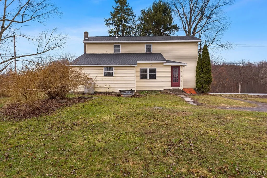 Located at 10382 State Route 34 in Weedsport, New York, updated 5 bed, 2 full bath 1.5 storey home with 50 acres. This charming 19th-century farmhouse offers a blend of historic character and expansive outdoor space. Built in 1830, the two-story residence encompasses 1,910 updated square feet and features four bedrooms up with a full bathroom and one bedroom on the main floor with an additional full bathroom. The property is set on a generous 50-acre lot, providing ample opportunities for farming, recreation, or future development. There are up to 24 tillable acres of which a portion are leased out for hay and 26 acres for full enjoyment of the outdoors. Exterior features include an inground pool with new pool pump (2023), two sheds, and durable vinyl siding. The home is situated within the Cato-Meridian School District, with Cato-Meridian Senior High School located approximately 3.5 miles away. This property presents a unique opportunity for buyers seeking an updated historic home with substantial land in a serene, rural setting.