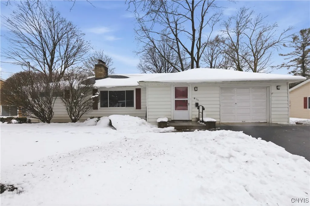 Welcome to 106 Haddonfield, located in the highly regarded Jamesville-De Witt School District! This charming 3-bedroom flat ranch sits in the heart of De Witt and showcases beautifully refinished hardwood floors along with the convenience of first-floor laundry. A spacious family room with a wood-burning fireplace provides a warm and inviting gathering space. The kitchen features classic solid wood cabinetry and plenty of opportunity for the next owner to make it their own. The bathroom includes a stand-up shower and timeless tile flooring. The large full basement offers a half bathroom, excellent storage and outstanding potential. An attached one-car garage adds everyday practicality. Major updates have already been completed, including new vinyl double-glazed windows, a hot water heater, dishwasher, new AC motor, condensate pump, and the addition of first-floor laundry. Additionally, the roof is only 13 years old. Homes at this price point in this location are hard to find! Just minutes to highways, hospitals, downtown, Wegmans, and more, this home blends comfort, convenience, and smart updates—and is ready for its next chapter. Open House Saturday 1/10 1130am-1pm.