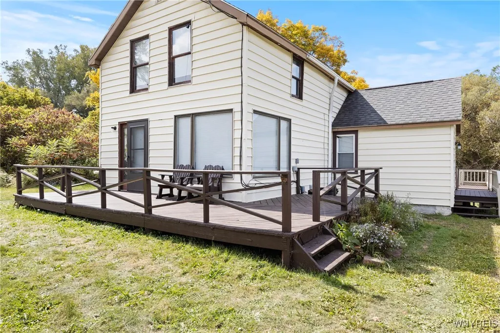 Welcome to your new home at 10757 Route 16 in Delevan! This charming and updated 2-bedroom, 1-bathroom residence is a true gem, offering a perfect blend of modern comfort and natural beauty. Step inside to discover a freshly updated interior with new carpet and flooring throughout. The front great room is a focal point, featuring both a wood stove and a pellet stove, providing added warmth and an inviting atmosphere on those cold winter nights. The kitchen is a chef's delight, showcasing new cabinets, a stylish tile backsplash, and a convenient pantry. All appliances are included, making this home completely move-in ready. The two spacious bedrooms each feature his/ her closets, ensuring ample storage. The large, updated bathroom includes new sliding glass shower doors and brushed nickel fixtures to complement its comfortable space. The home also boasts significant updates for peace of mind, including a new architectural roof (2018), new PEX plumbing (2021), and a new water heater (2019). Enjoy the outdoors on the wraparound front deck or on the back deck, which overlooks a partially treed fenced-in yard. The property's most unique appeal is its location, backing up to the famous Lime Lake Outlet, a spring fed year-round tributary a fantastic spot for year-round fishing. This is a rare opportunity to own a beautiful, updated home with a serene, natural backdrop. Square footage on the tax records is incorrect; the actual footage is 1300 from the appraisal done when purchased. Don't miss your chance to make this dream home a reality!