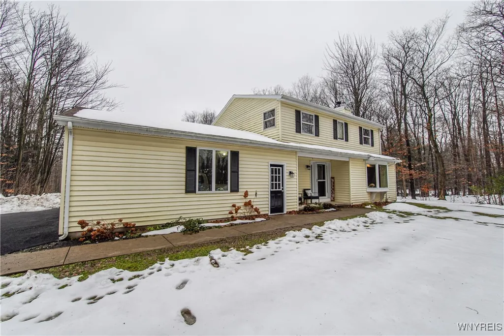 As winter settles in, this stunning home in the heart of Colden is ready to welcome you. Upon arrival, you'll be greeted by a brand-new blacktop driveway that leads to a convenient turnaround and an attached 2.5-car garage. Inside, the kitchen has been beautifully updated with premium features, including quartz countertops, a large island with a sink and dishwasher, tiled backsplash, luxury flooring, recessed lighting, and stainless steel appliances. The spacious living room is adorned with hardwood floors, a fireplace, and a large bay window, creating a warm and inviting atmosphere. This home offers four generously sized bedrooms and 2.5 bathrooms. The master suite is an absolute standout, with plenty of space to ensure comfort for years to come. Downstairs, the basement is ideal for extra storage, boasting both size and dryness. The current owners have installed a new water filtration system, ensuring the water is pristine despite being well-sourced. For added peace of mind, a hard-wired generator hookup is available for those rare times when the power goes out. Set on 2.5 acres, the property is surrounded by majestic trees, offering both privacy and natural beauty. A large yard is available at both the front and back, perfect for outdoor activities. Additional features include first-floor laundry, a picture-perfect rear porch, affordable taxes, and access to the highly desirable Holland School District. This prime location provides quick access to East Aurora, Kissing Bridge, and major routes to the Southtowns and the City. With so much to offer, this home is truly a must-see. Once you step inside, you’ll fall in love. Don’t miss the open house this Saturday, 12/14, from 1 to 3 PM.