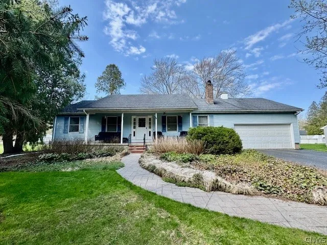 Welcome to this well maintained Ranch home offering the ease of one level living with plenty of space to enjoy. Featuring 3 comfortable bedrooms and 2 baths, this home boasts a large, inviting living room with wood burning fireplace perfect for relaxing or entertaining guests. The spacious kitchen provides ample room for cooking and gathering, making it the heart of the home. Enjoy additional living and storage space with a full basement, while the large yard and rear deck create an ideal setting for outdoor entertaining, gardening or simply unwinding. A 2 car garage adds convenience and functionality and new carpeting throughout gives the home a fresh, updated feel. Central air ensures comfort year-round and the central vacuuming system makes cleaning easy! Ideally located with easy access to the New York State Thruway, this home offers both tranquility and convenience - close to shopping, dining and everyday amenities. Don't miss this fantastic opportunity!