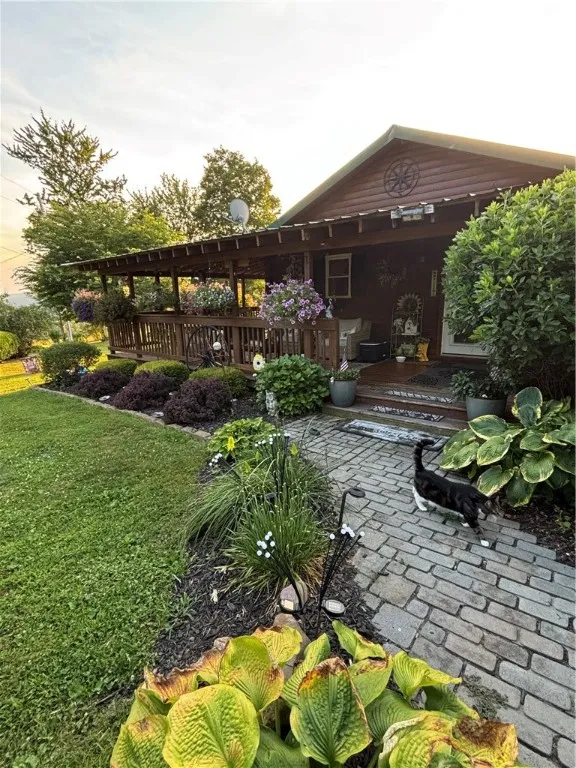 This relatively newer log home built in 2003 is fully updated and move-in ready and in like-new condition offering many wonderful amenities both inside and outside. Outside you will immediately notice the amazing curb appeal, not only of the home itself, but also with the attention to detail of the landscaping and the multitude of shrubs, bushes, perennials. A large outdoor koi fish pond framed with a covered patio area will greet you on the lower level. There are also 2 outbuildings (a smaller tool shed and a larger 16' x 32' storage shed with a full-sized overhead door usable for vehicle and/or equipment storage and/or workshop area). The upper level is framed on the outside with a large wrap-around covered deck (10' x 25' on one side and 10' x 35' on other side). This is a large entertainment space and is a peaceful sanctuary overlooking the valley. The covered deck was built in 2016 and the metal roof was installed in 2017. Inside you will notice all new appliances in the large, open eat-in kitchen. This home offers 3 bedrooms and 2 full baths on the main level and a 1/2 bath in the lower partially finished basement. You will be taken aback once you seen the artistic workmanship put into the lower level with a western motif. The lower living room area also offers a relatively large dry bar that leads right out to the lower patio area. This is another great entertainment area regardless of the weather. The back unfinished area of the basement offers a small workshop area that contains the utility systems for the house. This is separated with an ornate set of French doors. This is a must see and won't disappoint. Home is located on a quiet tranquil rural road offering tranquility and privacy.