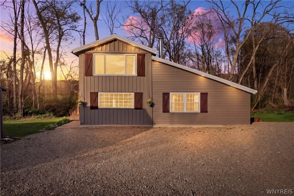 Escape to this beautifully renovated rustic retreat nestled in a peaceful setting with an enchanting creek nearby. Full of warmth and character, this charming 2-bedroom, 1-bath home features natural wood accents throughout, a beautifully updated bathroom with a stunning walk-in shower, and a spacious great room designed for comfortable living and entertaining. An additional bonus room offers endless flexibility for a home office, guest space, or recreation area. The rustic-style kitchen adds to the home’s cozy charm and is complemented by a propane stove, creating the perfect cabin-inspired atmosphere. Thoughtfully updated, the property includes two newer mini-split systems providing efficient heating and air conditioning, newer windows, a newer hot water tank, a durable metal roof, and upgraded electrical service in the barn for added convenience and functionality. Step outside to enjoy the deck, relaxing firepit area, and tranquil natural surroundings that make this property feel like a private escape. The impressive 24x58 pole barn offers over 1,400 square feet of versatile space ideal for storing up to 6 vehicles, workshop space, recreational equipment, or hobby use, complete with electric and water service. A rare opportunity to enjoy rustic charm, modern updates, and exceptional storage and workspace all in one unique property!
