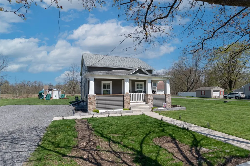 Welcome to 130 State Street in the heart of Manchester—a completely renovated Cape Cod that perfectly blends modern upgrades with classic charm. This 3-bedroom, 2 full bath home was taken down to the studs and thoughtfully rebuilt with high-end finishes throughout. Step inside to find a bright, open-concept layout featuring a stunning kitchen with quartz countertops, stainless steel appliances, a breakfast bar, and quality cabinetry with soft-close drawers. The flexible floor plan includes a first-floor bedroom and full bath, ideal for convenient one-level living or a home office setup.Upstairs, the spacious primary suite boasts a large walk-in closet and an oversized full bath with double vanity, along with the added bonus of second-floor laundry. Major mechanical updates include a new furnace, central A/C, hot water tank, and 200-amp electrical service.Enjoy outdoor living on the expansive front and back porches, complete with a beautiful stone façade and recessed lighting—perfect for relaxing or entertaining. Situated on a generous lot, this home offers space, style, and turnkey convenience all in one. Move right in and enjoy modern living in a charming village setting—this is one you don’t want to miss!
