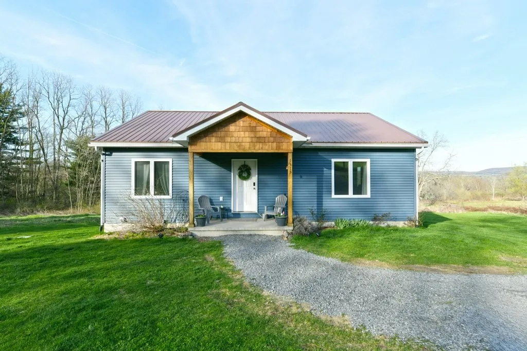 Scenic views over the Brooktondale hillsides with this newer modern ranch home on 6 acres in Ithaca Schools! Open floor plan with vaulted ceilings in the living room/kitchen and dining area. Lots of Southern light fills this open space throughout the day. Sliding doors lead to 9'x16' back deck offering privacy and pond views. There are 2 bedrooms and 1 full bath on the main floor with an oversized entry hall and laundry space. Lower level is finished with 2 more bedrooms and 2nd full bath, hobby/craft area with dry bar/sink and rec room. There's also an easy walk-out to backyard plus a mechanical/storage room. Radiant in-floor heating and on-demand water heater add to the modern conveniences. Room to add your garage but plenty of off-street parking. Don't miss the picnic pavilion/gazebo by pond offering nice covered space throughout the seasons! Ample garden areas too. Only a few minutes to either downtown Ithaca or the Hamlet of Brooktondale, quick commute to Cornell University or Ithaca College. Natural areas nearby include Six Mile Creek off Middaugh Road, Eldridge Wilderness Preserve off Troy Road or South Hill Recreation Way off Burns Road. Enjoy living the Ithaca lifestyle with views and space all around you! Any/all offers to be submitted by 11am on Wednesday April 30, 2025.