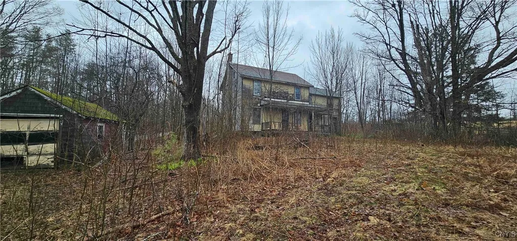 This spacious 5 bedroom farmhouse with a garage is located in Marathon NY, Cortland County. Embrace the charm of small-town living with this spacious 2,400 sq. ft. farmhouse located on a one-acre lot. Featuring 5 bedrooms, 1 bath and a wrap-around covered porch, this home offers ample living space. Whether you're looking for a home to renovate or a blank slate for new construction, this property is full of potential. Located on a quiet hillside, the land includes mature trees for shade and privacy, as well as plenty of space for gardens, perfect for those who love the outdoors. Marathon’s community is home to a small farmers’ market providing fresh local produce throughout the summer season. For those with a sweet tooth, don’t miss the village’s annual spring maple syrup festival, a celebration of rich local tradition and delicious treats. The farmhouse itself was built in the early 1900's and is in need of work or demolition. The property includes a small garage for storage or a workshop. Selling as-is, this property is a fantastic opportunity for someone looking to bring new life into it.
