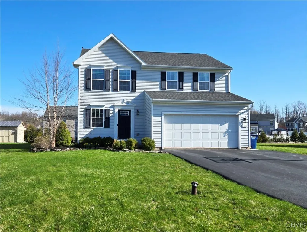 Welcome to this beautifully maintained 3-bedroom, 2.5-bathroom single-family home nestled in the sought-after Country Oaks neighborhood, within the West Genesee School District. Built in 2011 and thoughtfully updated, this 1,840 sq. ft. home sits on a generous 1/3-acre lot, offering the perfect blend of comfort, style, and space. Step inside to discover new flooring throughout the main living areas, an open-concept layout, and a bright, modern kitchen featuring butcher block countertops, ample cabinetry, and a walk-in pantry. The spacious living and dining areas flow effortlessly for everyday living and entertaining. Upstairs, you’ll find three generously sized bedrooms, including a serene primary suite complete with a large walk-in closet and a fully refinished en-suite bathroom, with a large soaking tub and contemporary finishes. The upstairs laundry room adds everyday convenience right where you need it most. Additional highlights include a tankless water heater for on-demand hot water, an unfinished basement offering endless potential, and a 2-car garage for convenient parking and storage. Enjoy quiet suburban living while being just minutes from Township 5, dining, and major commuter routes to downtown Syracuse. This move-in-ready gem offers the perfect opportunity to enjoy modern amenities in a peaceful, family-friendly neighborhood.