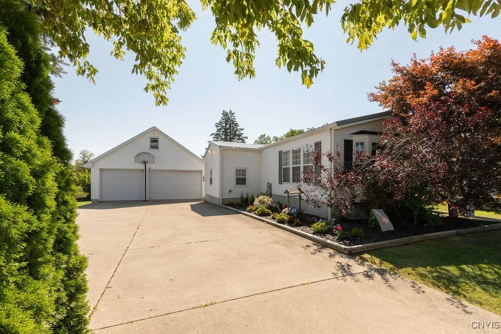 Charming 2-Bedroom Single Wide Home on Nearly Half an Acre! This spacious 1,120 sq. ft. single wide offers comfortable living with 2 bedrooms and a full bathroom on the main floor. Enjoy a great-sized kitchen featuring plenty of cabinet space and an open floor plan that flows seamlessly into the dining area and living room—perfect for everyday living. The partially finished basement includes a half bath, a family room area, utility room with washer and dryer, with in floor in heating and a walk-out door to the backyard. There’s also potential for a 3rd bedroom! Bonus features include a 4-bay insulated garage, with gas heater unit, full attic space, 200-amp electrical hook-up, and a stunning 28-foot back deck overlooking the spacious backyard. Recent updates include a new furnace, hot water tank, gutters, washer/dryer, and a metal roof—just to name a few. Don’t miss out on this move-in ready home with plenty of space inside and out!