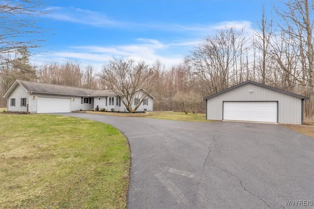 Charming Country Retreat with and In-Ground Pool! Escape to country living in this 2,032 Sqft home perfectly nestled on 3.29 secluded & scenic acres! This spacious 3-bedroom 2-bath home features an inviting open floor plan, cozy fireplace in the Florida room with abundant natural light. Updated & modern kitchen boasts quartz counter tops and some new stainless-steel appliances (2023). First floor primary bedroom with on-suite & first floor laundry. Full basement with propane forced air furnace with central A/C, also includes an additional bonus full home wood furnace system for wintertime efficiency. New Hot Water Heater (2024), recently updated bathrooms (2024), New Sump Pump, New vinyl blinds throughout the home (2023), New LVP flooring (2024). Step outside to your private backyard oasis, 20x20 heated Florida room that transitions onto the expansive patio complete with in-ground pool - plenty of space for relaxing or hosting gatherings - outdoor playset included! Huge foam insulated additional 4 car detached garage with full electric service - workshop! The sprawling acreage offers endless possibilities, simply enjoy the serene, wooded surroundings. Additional square footage included a 20x20 enclosed heated Florida Room. Don't miss this rare opportunity to own your own slice of paradise! Private showings start immediately, the seller has established an offer deadline (delayed negotiations) of Tuesday April 8th by 5pm. Open House on Sunday April 6th from 12-2pm.
