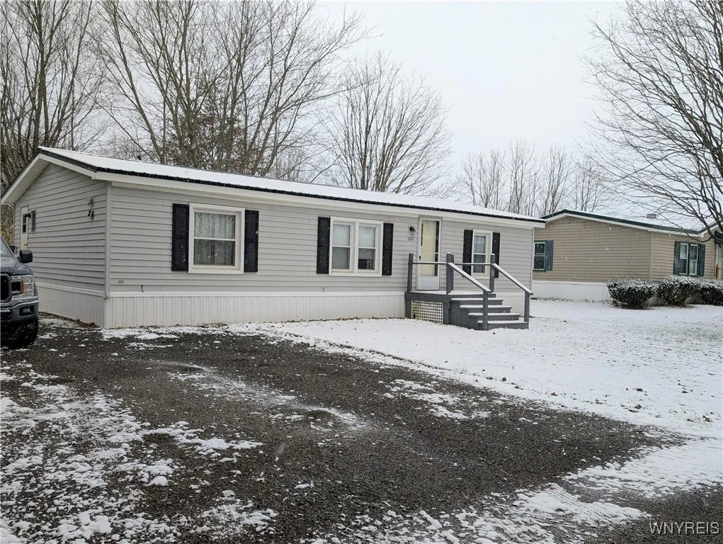 This 3-bedroom, 2-bath doublewide is located on a desirable back lot that offers added privacy and a more peaceful setting. The property backs up to a neighboring private lot, which that owner has verbally allowed the seller to use part of it for gardening, bird watching, or outdoor enjoyment. Interior features include all newer windows (except the bathroom),Refrigerator, oven and dishwasher. Bathrooms have been mostly renovated, new flooring in both bathrooms, some updated fixtures including new toilets and an easy access low-step shower for added convenience. Enjoy peace of mind with a newer metal roof, newer large 40-gallon hot water tank, and a newer furnace installed in 2013. New skirting on the exterior has also been added. Extra wide stone driveway for convenient parking. Affordable lot rent currently $335/month includes water, sewer, and garbage service. Arcade Electric provides economical utility costs. Move-in ready and affordably priced, this home offers comfort, updates, and a great location.