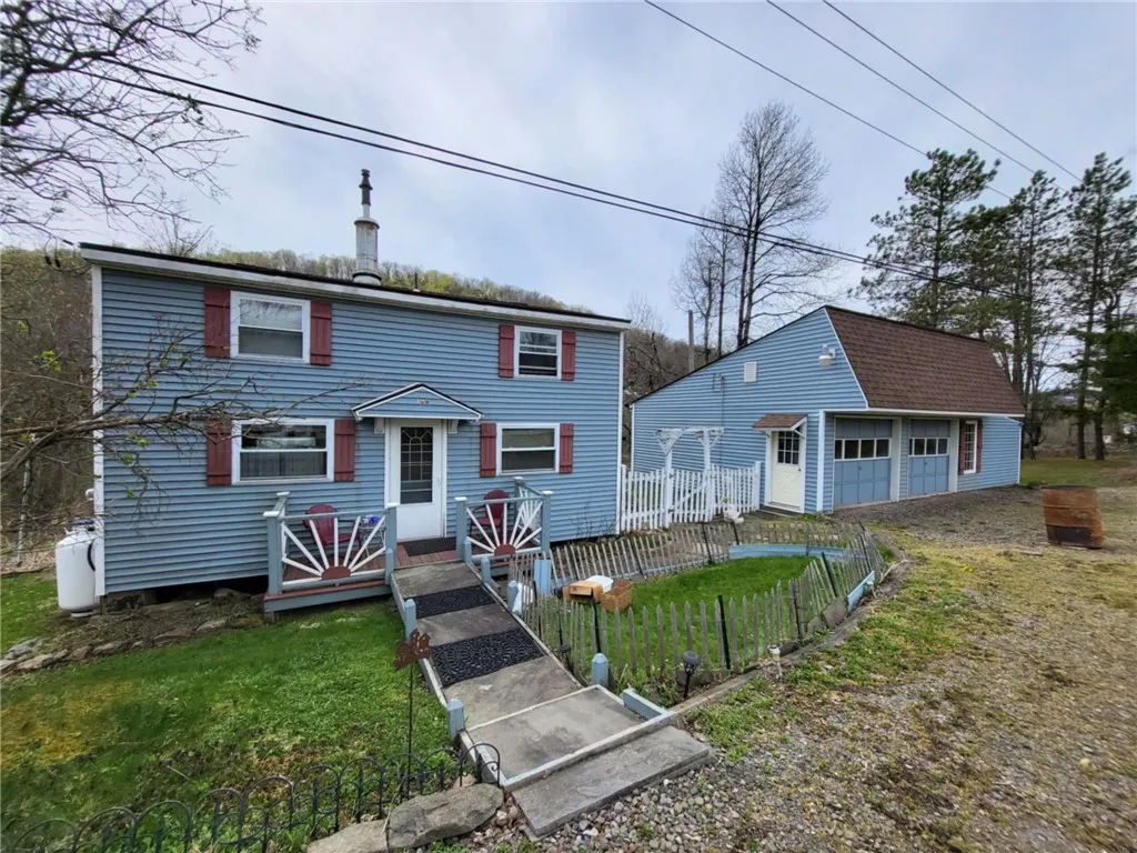 CHARMING COUNTRY RETREAT! Escape to tranquility with this delightful property nestled in the heart of Guilford NY. This charming home offers the perfect blend of rustic charm and modern convenience, making it an ideal retreat for those seeking serenity. This inviting home boasts 2-3 bedrooms and full bath with a h/u for a 1/2 bathroom upstairs. Fully applianced modern eat-in kitchen. The open concept living area features large windows that flood the space with natural light. Look out over the attached deck with sliders or sit out and listen to the sounds of the creek that runs across the back of the full acre of land. Perfect for outdoor gatherings and gardening. There is a spacious 2 car heated garage with workshop space and electric. Previously used for a pottery studio. A wonderful get away!