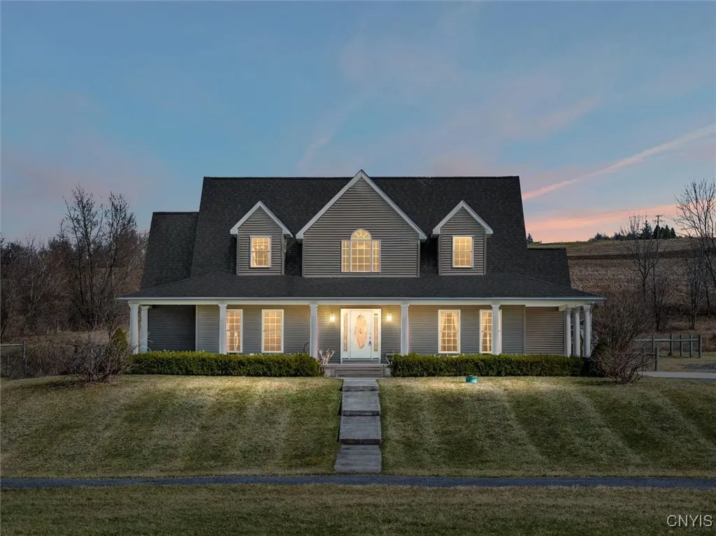 Country living with style! views from the front porch will enchant you!!! The rest of this home will captivate you. Spectacular views from every angle. Soaring ceilings, brilliant great room. Easy flowing floor plane, fabulous 16 plus acres, 40x50 barn and outbuildings, golf, Colgate University, Hamilton College all nearby.