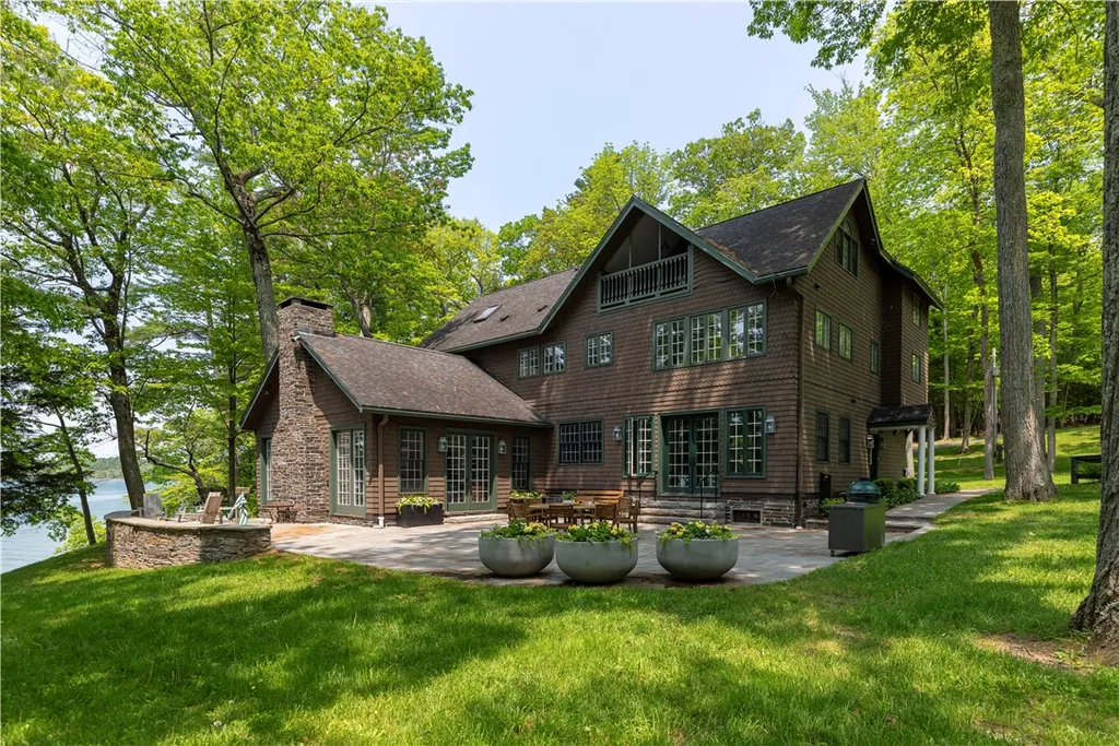 The beauty of Otsego Lake is calling with this rare find - a grand Arts and Crafts style home with guest apartment set on 14.88 private acres and close to 500 feet of breathtaking lake frontage. Every room in the home has been carefully positioned to take in sweeping views of this pristine glacial lake known for its ''Glimmerglass'' appearance and surrounding rolling hills. The first floor of the main house is a host's dream with spacious, sunny rooms that flow easily and invite you in. The generous dining room opens up to one of the centerpieces of the home - the sunny living room with its cathedral ceilings, large stone fireplace and tall windows. The chef's kitchen will certainly become the hub of the home with marble counters, a walk-in pantry, Wolf induction range and refrigerator, and the adjoining catering kitchen. For a cozy evening, head down to the study which offers its own stone fireplace. The second floor feels spacious and comfortable with its three bedrooms, two baths and laundry room. The generous primary suite has room for a king bed, sitting area and includes a walk-in closet and ensuite bath. Up to the third floor and you'll find two more bedrooms with a lavish bath. This home has been lovingly updated with renovations by a high-end local contractor that include creating a new kitchen, updates to all bathrooms, Restoration Hardware fixtures, finishing the third floor bedrooms, adding a new boiler, Marvin windows, hardwood floors, outdoor terrace, hot tub, gas fire pit, Tesla car chargers, and replacing the septic system. There is also a two car garage with a sweet and stylish one bedroom/one bathroom apartment. While nearby Cooperstown is known for the Baseball Hall of Fame, there is so much more this picturesque upstate town has to offer. For arts and culture, check out the world-class offerings at Glimmerglass Opera as well as the Farmers Museum and Fenimore Art Museum. Dine at the historic Otesaga Resort Hotel or local favorite Origins Cafe. You are also under an hour and a half from both Syracuse, Albany, and Windham Ski Club and three hours and twenty minutes to the GWB in NYC.