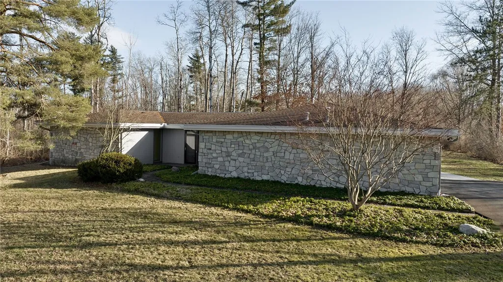 Frank Lloyd Wright-Inspired Home on just over 2.5 acres. Experience modern living at its finest in this stunning 3-bedroom, 2.5-bath home. This sophisticated retreat seamlessly integrates indoor and outdoor spaces with floor-to-ceiling glass windows throughout the main living areas, bringing nature indoors and creating a harmonious atmosphere. The open floor plan features stone floors, a striking gas fireplace, and a renovated kitchen with top-of-the-line appliances, granite countertops, and hardwood floors, making it a chef’s dream. The first-floor primary suite provides ultimate privacy and convenience, while the newly remodeled center atrium offers a versatile space perfect for year-round relaxation. Additional highlights include renovated bath, central air, a slate entryway, and a two-car attached garage. The office area overlooks the private backyard, while a workout room can easily be converted into a media room. The backyard is a true oasis, featuring a new bluestone patio off the atrium, ideal for outdoor entertaining or quiet relaxation. Located just minutes from Cayuga Medical Center and Downtown, this unique property offers the perfect balance of privacy, sophistication, and accessibility, making it a one-of-a-kind home you won’t want to miss.