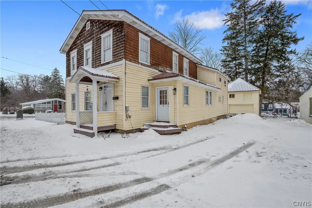Welcome to 20 S. Jefferson St. in Pulaski, a newly remodeled two-unit home in a prime village location directly across from the world-famous Salmon River. This versatile property offers multiple possibilities—live in one unit and rent the other, create a short-term rental, or convert it into a spacious single-family home with the simple removal of one wall. Recent updates include a new roof, high-efficiency furnace with on-demand hot water, updated lighting, ceiling fans, laminate flooring, appliances, and fresh paint throughout. The downstairs apartment features butcher block countertops, beautifully refinished hardwood floors, spacious rooms, and custom sliding barn doors. The upstairs apartment offers three bedrooms with potential for a fourth, some newer windows, and a charming clawfoot bathtub. A detached two-car garage with loft space provides excellent storage, and both units offer convenient off-street parking. Enjoy evenings around the outdoor fire pit after a day of work or time spent on the river. Located just minutes from Lake Ontario and some of the area's best fishing, this property is ideal for homeowners, investors, or those looking for the perfect fishing getaway.
