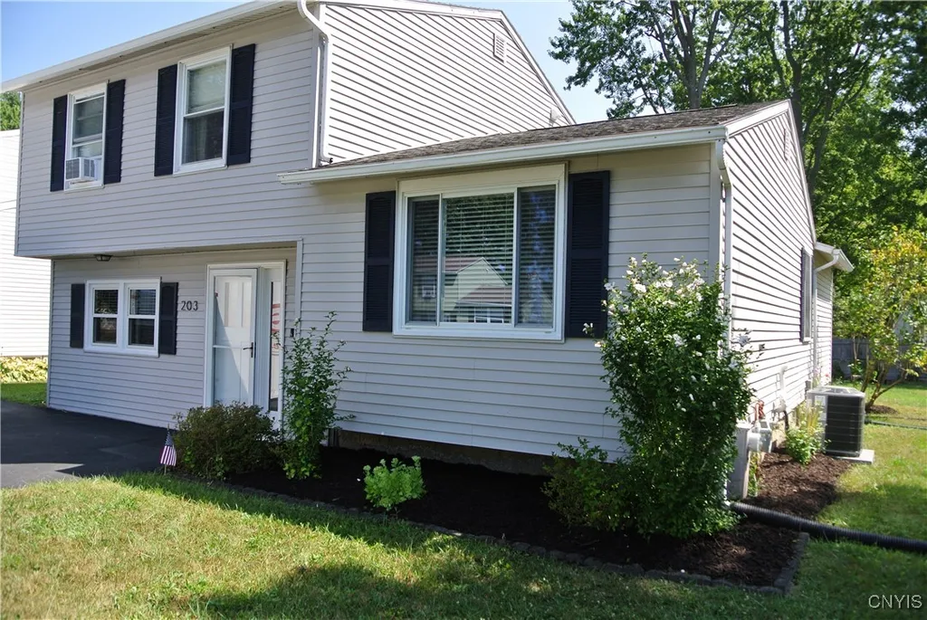 Welcome to this charming home in the Village of Minoa, located in the popular ESM school district. Inside, you’ll find two living areas, first-floor laundry, and a kitchen with abundant cabinet space plus a sliding door leading to the back porch. The spacious backyard is perfect for entertaining, with a patio ideal for gatherings or enjoying your morning coffee while watching the sunrise. Recent updates include brand-new central A/C (2025), new attic insulation and sill insulation (2023) to keep energy bills low, and newer upstairs carpet (2020) and bedroom doors throughout the upstairs bedrooms along with a new front door and screen (2022). The full basement provides ample storage with additional storage in two outdoor sheds with the rest of the house providing plenty of opportunity to make it your own.