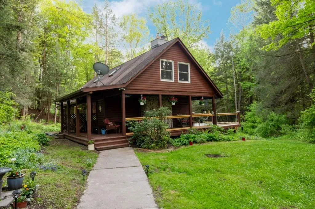 Welcome to your own secluded oasis just South of Ithaca! Whether you’re looking for a quiet retreat, a homestead opportunity, or a base for recreational adventures, this property offers unmatched privacy, versatility, and natural beauty highlighted by wood accents throughout. Step inside to find an inviting interior where exposed beams and vaulted ceilings surround the 2-story stone hearth to create a cozy, cabin-like feel. An open living/dining room/kitchen space offers modern living, from the Corian counters, center island with breakfast bar seating, hickory cabinets and custom tile backsplash. A flexible floor plan with a primary bedroom and bath on the main level plus a large open loft overlooks the main living room —ideal as a second living area, studio, home office, or music room, with endless potential to adapt to your lifestyle. The fully finished walkout basement adds even more living space and flexibility. It features a spacious family room with a second stone fireplace, a full bathroom, and a private bedroom—perfect for guests, multi-generational living, or creating a separate retreat. With central AC/heating provided by Mother Earth via the geothermal system, you will enjoy reasonable utilities too. Outside amenities include an open deck accessible to the wrap-around covered porch, a newer detached 3-car garage with both workshop space and a 2nd floor loft, providing excellent space for storage, hobbies, or small business needs. With over 10 acres, divided by woods and open fields to explore, you'll enjoy regular visits from deer, wild turkeys, fox and various songbirds. An established fenced-in garden and chicken coop too. Whether you're relaxing by the fire, working in the shop, or enjoying the peace of your own land, this property offers a rare blend of rustic beauty and practical living. Minutes from everything downtown Ithaca but also Treman State Park and the Lindsay Parsons Biodiversity Preserve in West Danby. Live your Finger Lakes dream here!