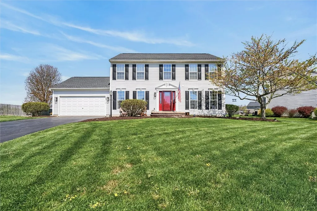 Welcome to 22 Nuthatch Dr in West Henrietta—a beautifully maintained 2,176 SF Colonial on a spacious .52-acre cul-de-sac lot w/ sidewalks & no thru traffic. As you approach, you’ll notice the landscaped yard w/ spring-blooming trees incl weeping cherry, crabapple & forsythia. Front beds feature perennials such as lavender, balloon flowers, black-eyed Susan, bee balm, coneflowers, clementine & grasses. A stunning walkway & stairs lead past a custom decorative stone patio—perfect for morning coffee or relaxing in the evening. The walkway guides you to the front door w/ stained-glass inset & sidelights. Inside, a 2-story foyer on the east-facing side fills w/ morning sunlight. The entry is flanked by 6’ windows in both the dining rm (LVP flooring w/ custom layout ‘25 + new chandelier) & flexible living rm (ideal for formal space, den or office). The open-concept family rm on the west side flows into the eat-in kitchen & features a gas FP w/ wall switch. LVP flooring continues along w/ 6’ windows. The kitchen offers an island, pantry, recessed lighting, Bosch DW (‘18), disposal, microwave, elec stove, side-by-side refrigerator & new faucet (‘25). 1st floor also includes a half bath & convenient laundry (W/D ‘10). Upstairs, the primary suite features double-door entry, 2 closets (incl WIC) & private bath w/ dual sinks, tub/shower combo & new lighting. 3 additional bedrooms share a full bath & offer flexible use. The basement offers great potential & includes a gas HWT (‘18), furnace & central air (‘05) - all serviced, cleaned, & inspected in ‘25 & ‘26. Outside, the large back deck is perfect for entertaining & enjoying beautiful evenings w/ breathtaking sunsets as you face the western horizon. Enjoy a fully fenced yard (‘21), a 27’ above-ground pool w/ wrap-around deck. The pool utilizes Soft Swim biguanide-based chlorine-free sanitation w/ new pump in ‘23. Additional features of this home include an attached two-car garage w/ electric & a new door (‘25) to access the backyard directly. A full tear-off installation of architectural shingle roof was done in ‘19 & shutters were fully replaced in ‘25. Delayed negotiations -Wednesday, May 6 at 9 AM.