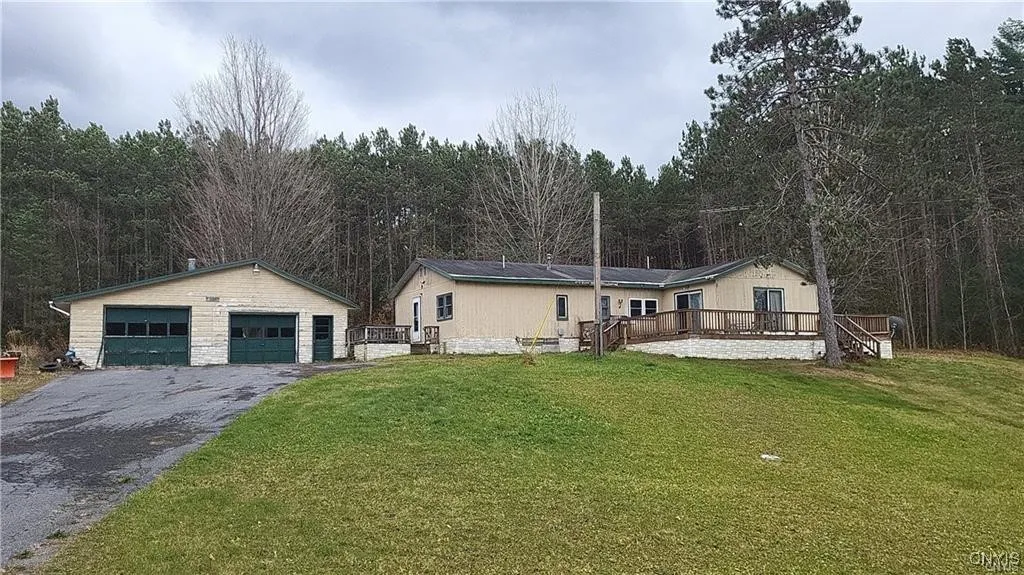 Here’s your opportunity to own an affordable home in the stunning Adirondack Park! Tucked away from the road, this home sits on two beautiful acres with around 300 feet of frontage, offering plenty of privacy. You'll find a two-stall garage and a shed for all your storage needs. Inside, the home features 3 bedrooms and 1 bathroom, with a cozy pellet stove providing warmth during the colder months. Don’t miss out on this incredible deal! Property is being sold as-is.