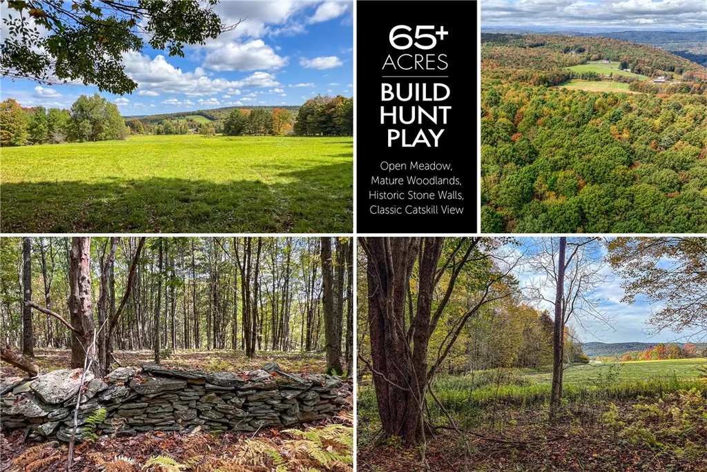 Rising gently off Jackson Hill Road, this lovely 65 acre parcel is a compelling build-site. With an open meadow in the front with 7 plus acres, and magical forestland behind, the land lends itself to many adventures. Hunt year-round in these woods. ATV, and snowmobile. Or just wander the ridges and valleys and explore the rock faces, mature woodlands, and numerous classic stone walls. The view from the southern corner of the meadow is breathtakingly beautiful. With distant rising ridgelines and the neighbor’s massive pond in the distance, you’ll never tire of this setting. A short drive to Oneonta, Delhi, Stamford and under three hours from the GWB.