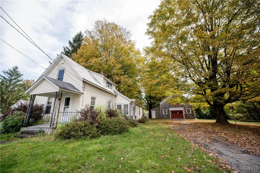 DREAMY SETTING IN THE VILLAGE OF POLAND! A beautiful maple tree greats you as you pull up to the home. Primitive styled barn completes that postcard like picture. The home is a sweet bungalow style with lovely yellow vinyl siding and durable metal roof. Energy efficient replacement windows adorn much of the home. Stepping inside, you enter the side entrance through a quaint 3 season sun room directly to the kitchen. Appliances are well placed and a cool island extension allows for bar seating, buffet presentations, and certainly, extra counter space. Window over the sink allows for sunlight to infuse the space even on a gloomy day. Original hardwood flooring adorn much of the home. To the right of the kitchen is the first floor bedroom and further on is a convenient space for washer dryer, coats and boots drop, and door to the rear of the home. To the left of the kitchen sets the large living room with pellet stove centering the room and is a natural draw for the chilly winter nights. Calm grey color palette cover the walls. The second story is a lovely surprise! Primary bedroom area with cathedral ceilings and walk in closet. The space allows for any number of furniture arrangements. Outside, THAT BARN! Let your creative ideas bloom with this lovely structure! Yes, you can park your car inside...but ...if you have a hobby, an entrepreneurial idea, or simply need storage, this 2 story structure can accommodate! A surprise feature is the 3 season sunroom incorporated into the building that calls for a cool space to gather or entertain. Poland is a walkable, vibrant community. A place where neighbors still take evening strolls and children can ride their bikes. Do you yearn for that 'small town' vibe, yet 20 minutes to the main city hub of Utica? Created along the banks of the West Canada River, this area is steeped in history and offers a restful respite from the hustle and bustle of a fast paced world. With low taxes, affordable housing, proximity to civilization, 40 minutes to the heart of the Adirondacks, and a smaller school system that is 'standing room only' at school events. Live the life you have dreamed of.