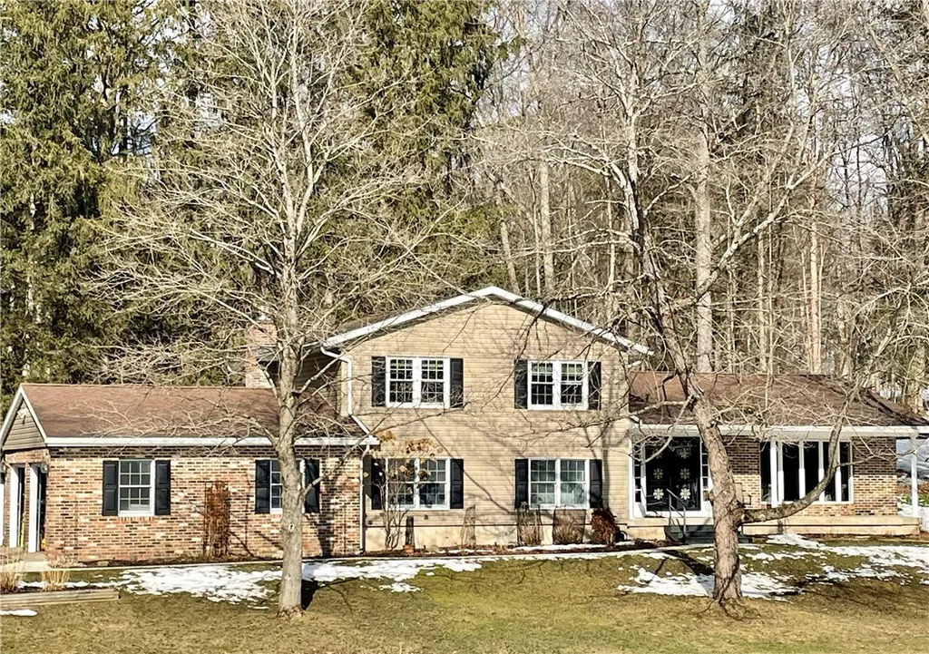 GOLFERS DREAM! Directly across the road from Canasawacta Country Club (walk over for dinner or golf). This home is beautifully situated on 1.92 acres with a pond, an open bonfire area, flowerbeds filled with perennials, spring bulbs, and blooming shrubs - all surrounded by wooded areas. Get a sense of real privacy with the long drive and set-back from the road! Create memories in a home that has everything for you! Enjoy the spacious family room with a gas fireplace, and which walks out to the patio & deck. The kitchen is lovely and has updated quartz countertops, double wall ovens, and includes all appliances. There are hardwood floor throughout the kitchen, breakfast area and formal dining room. The living room opens to the dining room and is perfect for gatherings! Easy first floor living if desired with a downstairs bedroom, half bath and laundry room. The large primary ensuite bedroom includes a full bath with a seated, walk-in shower & heated towel rack. Two more bedrooms and another full bath complete the upper level of this beautifully appointed home. There is plenty of built-in storage in the unfinished basement with poured concrete walls, Bilko door, sump pump and workshop area. The attached 2-car garage is heated and is conveniently accessed from the family room. There is also a 10'x14' storage shed (2014). Other improvements include: water heater ('16), drainage tile in front yard ('14), new septic line from house to tank and leech field(9/16), vinyl siding ('18), Culligan water softener ('20), new low voltage landscape lighting(house '18 & driveway '25), replaced well pump and new check valves (11/20), front steps, railing & sidewalk (10/23) and water pressure tank('24). Please note the mailing address for this property is Norwich, NY 13815 Only 2 miles from the City of Norwich.