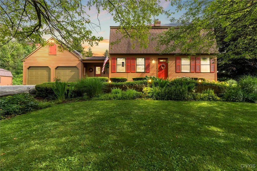 Just minutes from the Village of Cazenovia, this beautifully maintained 3-bedroom, 2.5-bath Colonial sits on 1.2 acres of private land. Inside, you'll find custom kitchen cabinetry and a unique kitchen island crafted from a repurposed bowling alley lane, adding character and charm. The home features a full basement, a two-car garage, and a bonus shed for additional storage. Mature trees surround the property, offering added privacy and a peaceful setting. A back porch with a hot tub—conveying with the home—provides the perfect spot to relax. The property is also equipped with solar panels, offering potential energy savings for the next owner. This home blends classic style with unique features in a highly desirable location—schedule your showing today.