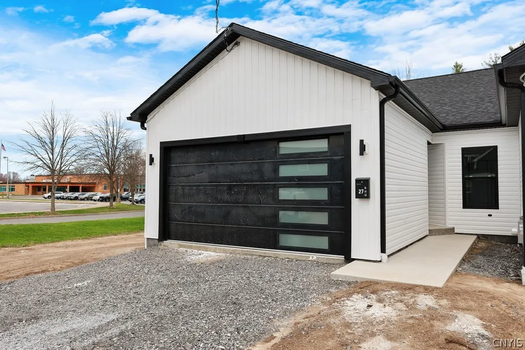 Welcome to this brand-new 2-bedroom, 2 full bath end-unit townhouse that perfectly blends modern style with everyday convenience. — Individually zoned as a single-family home, this property is located on the far-left end closest to the elementary school and boasts. Inside, you’ll find gorgeous wide plank white oak floors throughout the main living spaces, a bright open layout with lofted ceilings, and oversized sliding glass doors that fill the home with natural light and lead to beautiful Trex decking. The kitchen is a standout, featuring quartz countertops, a spacious island, two-toned cabinetry, and stylish pendant lighting. Both bathrooms are custom designed, while the bedrooms offer cozy carpeting. The primary suite includes a walk-in closet for added comfort. A power-forced hot water heater adds efficiency.