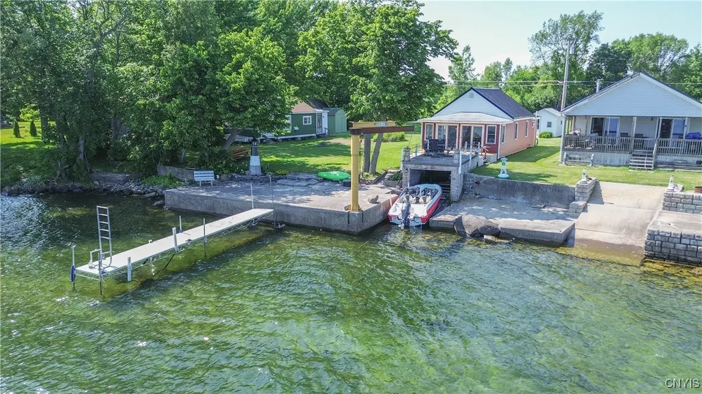 Your Dream Cottage on Chaumont Bay awaits you and all that Lake Life has to offer you!!! Do not miss out on this absolutely stunning totally like brand new 3 season Bay Getaway that could be converted to 4 seasons! This breathtaking Lake Home boasts a beautiful open layout Kitchen/Dining and living room area with a lovely front porch/den area overlooking the lake! Full bathroom and 2 cozy cottage bedrooms, Mini Split for AC and Heat, TV mounted and fully furnished!! How about the incredible working boathouse and rail system for your boating needs! Awesome Dock, incredible seawall which doubles as a huge patio area as well as on top of the boathouse and so much more! Shore well, shed with Laundry and 1/2bath area PLUS a spacious 2 car garage! Imagine sitting out on your deck, dock or patio areas and watching the spectacular sunsets or the beautiful lake views all summer long! Outstanding Ice fishing area as well! This beauty has been redone top to bottom to include, Gutted with new insulation, new kitchen, bath, flooring, windows, doors, siding, roof and more! Easy to maintain, all you have to do is add some water toys and love your life!!! Call today before it's too late on this one! SF approx. and didn't include porch