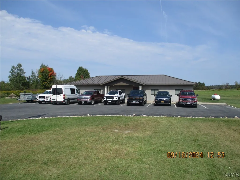 Great opportunity to move your offices to this amazing office building. Offering eight offices, a full bath, kitchenette and conference area. Building is made from poured concrete walls, so very efficent for heating and cooling. The furnace is FWA with LP Gas and has central air. There is an automatic generator. Nice covered porch on the front and a concrete patio off the rear. Black top driveway offering eight parking spaces. Great location at Coopers Corners just off State Route 37. Must see newer built office building.
