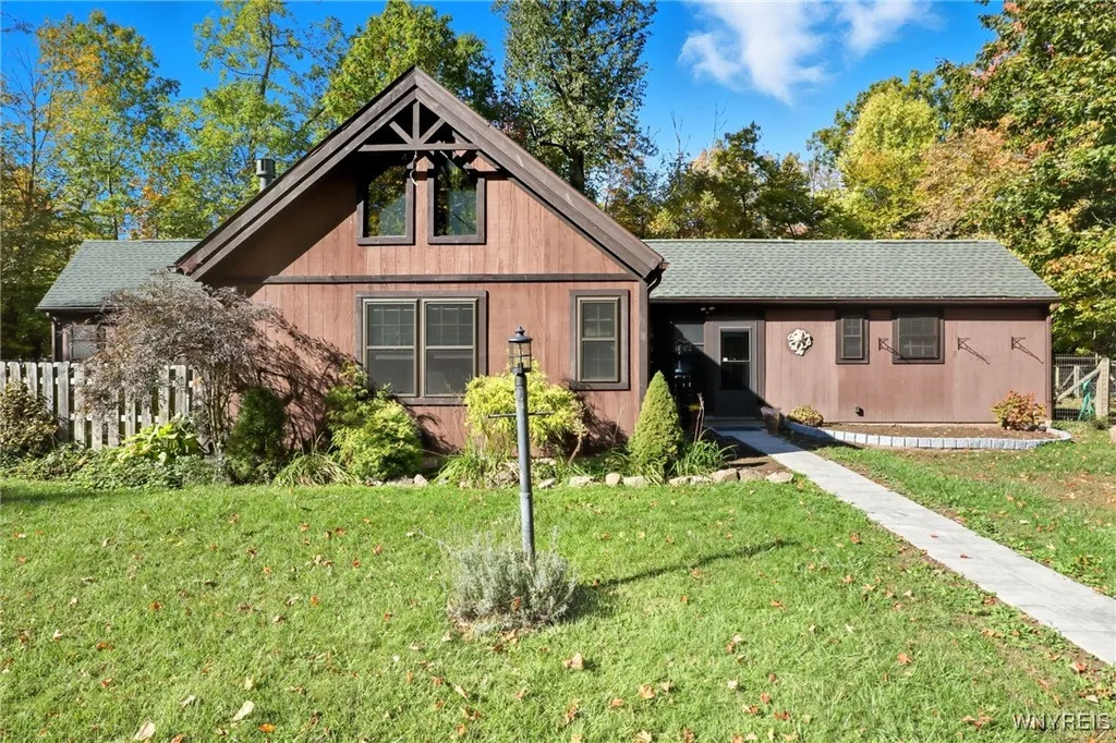 Tucked away on a serene, tree-lined 2.34-acre lot, this beautifully updated ranch offers unmatched privacy, tranquility, and modern comfort—just minutes from Lake Ontario. Set back from the road with a spacious turnaround driveway, this property invites you into a peaceful retreat surrounded by nature. Step inside to a warm and welcoming entryway with heated floors, setting the tone for the quality and comfort throughout. The cathedral-ceiling living room is the heart of the home, featuring massive picture windows overlooking the fully fenced & wooded backyard, a cozy wood-burning fireplace, and rich hardwood flooring. The open-concept kitchen and dining area is ideal for entertaining, showcasing high ceilings, new cabinetry, a large kitchen island with breakfast bar, brand new stainless steel appliances, a walk-in pantry, and a second fireplace in the dining space. The primary suite is a peaceful retreat, complete with a spacious en suite bathroom featuring double sinks and an exterior glass door leading to a private deck perfect for late-night stargazing. On the opposite wing of the home, you'll find two generously sized bedrooms, one with its own access to the backyard, and a fully updated second bathroom. You can find ample storage in the shed outside with a full additional loft. Major updates and features include:Kitchen & appliance remodel (2025), Bathroom renovations (2016), Tank-less hot water, Generator (2016), Water filtration system (2025), Lifetime gutter guards (2024). If you're seeking peace, privacy, and modern comfort near the lake, this one-of-a-kind property is not to be missed.