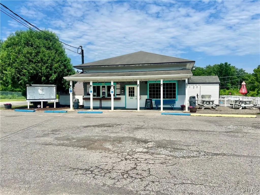 2100 square foot building on 1.13 acres. Located on a high traffic street with road frontage & access on two sides of the property. Parking lot holds 70+ vehicles. Currently operating as a pizzeria and ice cream shop with indoor and outdoor seating and a walk-up window. Fully equipped kitchen large enough to accommodate all types of restaurants/diners/bars including 3 phase electrical, walk-in cooler and outdoor grease trap. High visibility location, just 1/4 mile from the Village of Phoenix and the North Island enhancement project at Lock 1 of the Oswego Canal. Just 4 minutes north of Radisson. Make your dream a reality!