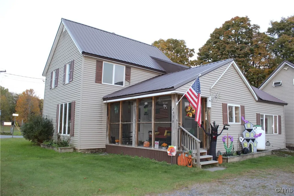 2936 Co Rt 17 is a beautiful country home boasting a warm custom kitchen overflowing with cabinet space, gleaming bamboo flooring, Corian solid surface counters, full pantry and breakfast bar. Fall in love with the extra-large gas cooktop, built-in oven and microwave that saves counter space. The updated living room and bonus room both offer large picture windows allowing plenty of natural light and space to spread out and relax. Enjoy the convenience of a 1st floor bedroom, 1st floor full bathroom and laundry along with no step access to the screened in front porch. Upstairs are the two additional bedrooms and walk-in attic storage. The enclosed back porch leads to the open deck and detached 26x40 detached garage with full walk-up second story and carport. The oversized garage has full power, an abundance of space for all the winter toys, lawn equipment, workspace and extra storage needed! The partial fenced yard and mature maples provide privacy on the 1/2-acre corner lot. The property is centrally located between the Tug Hill region, Oneida Lake, Lake Ontario and Salmon River for quick access to snowmobile and ATV trails, boating and world class fishing. A short 15 min drive to I-81 allows for commuting to Syracuse and Watertown. Call today to schedule your appointment and see how much this hidden gem and all its updating has to offer!