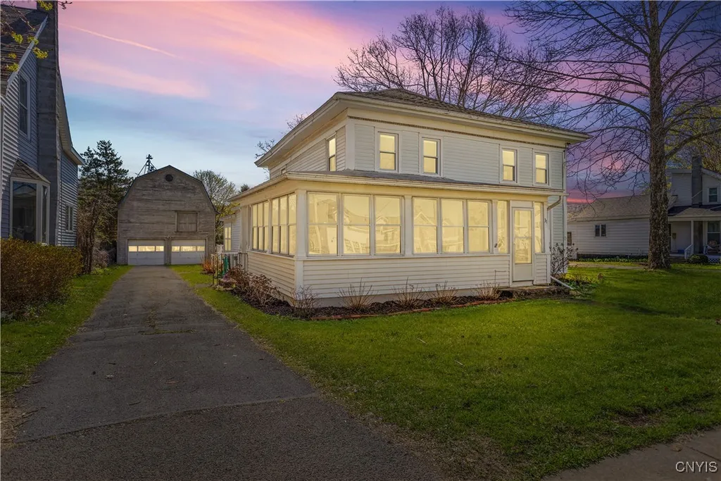 Gorgeous Remodeled Village Colonial in the Heart of Tully. This beautifully updated Village Colonial combines classic charm with modern style, nestled on an enormous lot in a convenient location. Featuring a remodeled kitchen with sleek cabinetry, center island, wine cooler, and a sunny morning room, this home is designed for both everyday living and entertaining. A full formal dining room sits adjacent to a front living room, while the spacious back family room offers an abundance of natural light and a cozy fireplace. The first-floor half bath has been stylishly added, along with the first-floor laundry room! Enjoy the porch morning or night, a perfect extra place for plants (& people)! Upstairs, you’ll find comfortable bedrooms and a fully renovated full bathroom with modern finishes. Step outside to experience an enormous backyard with a deck, patio, and garden/art shed. The carriage house garage offers tremendous storage & workshop potential—it has a new roof and EV charger installed! Located in the heart of Tully Village with walkable access to local shops, schools, and restaurants, this home encompasses the space and upgrades you’ve been waiting for.