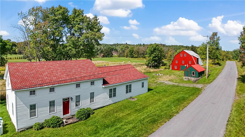 5 BD Farmhouse with a pond, 2 Huge Barns on 18 level acres! Step into timeless country living with this beautifully maintained 1840 farmhouse on 18.52 private acres in Jefferson, NY. This spacious 5-bedroom, 2.5-bath home offers warmth, character, and plenty of room to spread out. Inside, you'll find a cathedral-ceiling great room with exposed beams and a wood stove, an inviting eat-in kitchen, and a first-floor primary suite for convenience and flexibility. Upstairs, the home features a second primary suite with a charming clawfoot tub, along with three additional bedrooms and a full bath - ideal for family, guests, or multi-generational living. Throughout, you'll enjoy rustic details like wide plank pine floors and natural woodwork that add to the home's historic charm. Enjoy the outdoors with a screened-in porch overlooking the pond, a large deck, and open fields perfect for horses or livestock. A preserved two-story former dairy barn now serves as a workshop and storage, while across the street sits another large two-story barn and additional pasture for even more space and possibilities. The property also includes a pump house with a drilled well, adding both function and authentic country character. Located in the Jefferson School District, this home offers privacy and peaceful views while keeping you close to local shops, dining, and year-round Catskills recreation.