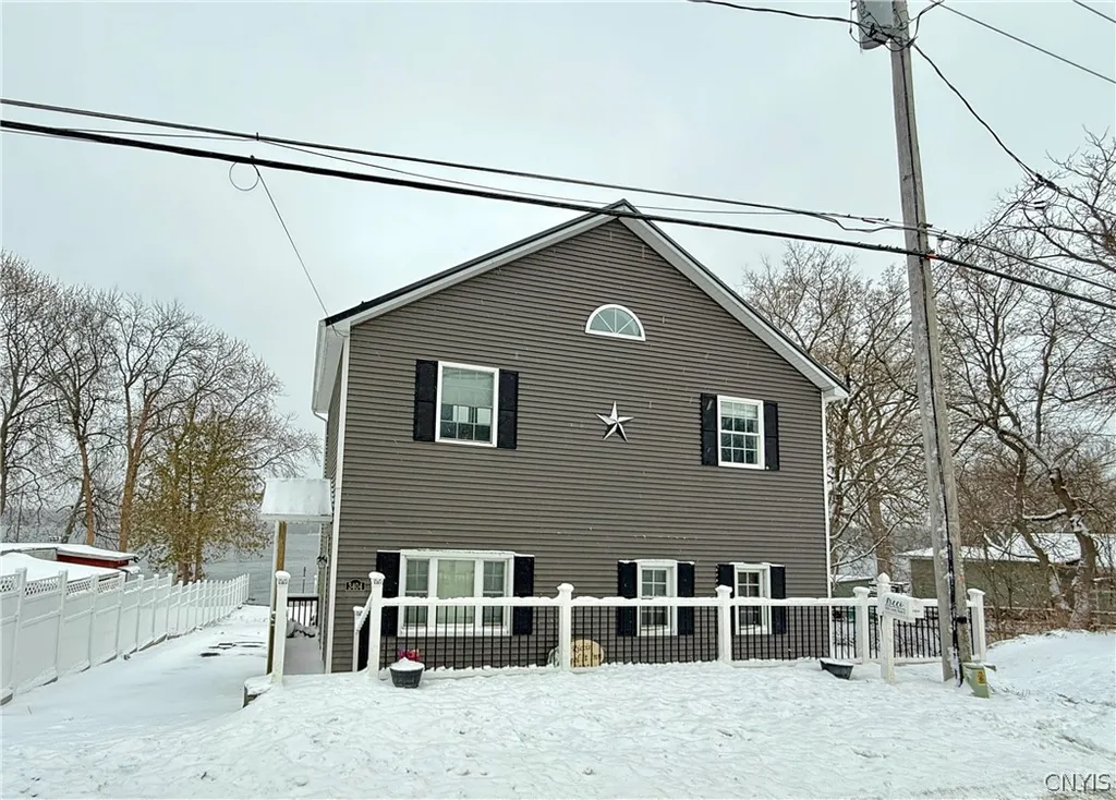 Flood insurance is not required—contrary to some public sites—making this a rare opportunity for year-round living on Black Lake. This beautifully renovated home has been thoughtfully updated from top to bottom, featuring new wiring, plumbing, siding, metal roof, and a completely rebuilt second story, all set on a solid poured concrete foundation with a full basement and half bath. Cozy up by the wood-burning fireplace in cooler months and enjoy central air in the summer. Take in stunning waterfront views from the enclosed, heated sunroom or unwind on the private balcony off the spacious primary suite, complete with walk-in closet and ensuite bath. A powered pole at the shoreline adds extra convenience for your waterfront lifestyle.