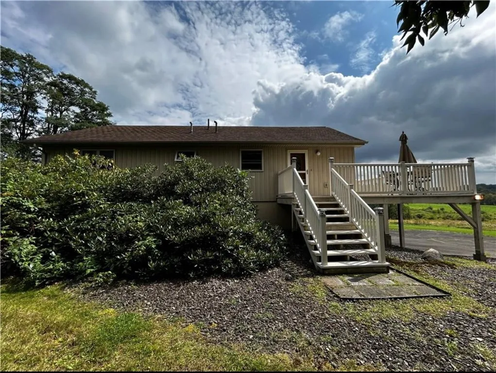 Welcome to your mountain~view retreat! This charming 3-bedroom, 1-bath home sits on just over 3 private acres and offers the perfect blend of comfort, functionality, and peaceful surroundings. Take in the breathtaking views from the wraparound deck~ideal for relaxing mornings or evening gatherings. Step inside to an open-concept layout featuring a large living room with a cozy gas fireplace and plenty of space to unwind. The spacious kitchen offers an abundance of counter and cabinet space~perfect for cooking, entertaining, or everyday living. Sliders lead directly from the main living area to the expansive deck, seamlessly blending indoor and outdoor living. Upstairs, you’ll find two generous bedrooms with ample closet space and a full bathroom. The lower level offers a flexible space~ideal as a third bedroom, office, or guest room—plus a dedicated laundry area for added convenience. Need even more room? Off the under-house two-car garage is a bonus room ready to become your dream workshop, home gym, or creative studio. Outside, a separate detached garage/workshop provides even more storage or hobby space. A separate pad with water, electric, and sewer hookups opens up a world of possibilities—whether you’re thinking of a guest house, home business, or RV setup. This property combines beautiful views, versatile spaces, and peaceful living~just waiting for your personal touch.