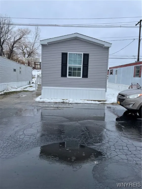 GREAT PRICE! NEW HOME! Move in ready, 2 bedroom, 1.5 bath manufactured home. 2x6 Exterior walls, architectural shingles, thermal windows. Spacious living room with built in bookcase, open to eat in kitchen. Breakfast Bar, Gray flat panel cabinets, gas stove, refrigerator, dishwasher. Stainless deep well kitchen sink. Owner bedroom with large closet. Full bath with walk in shower, vanity. Front bedroom with half bath, vanity and wall towel cabinet. Interior whole house water shut off, vinyl skirting, 8x10 storage shed. Conveniently located on bus line, close to shopping, well maintained community. Star tax credit eligible