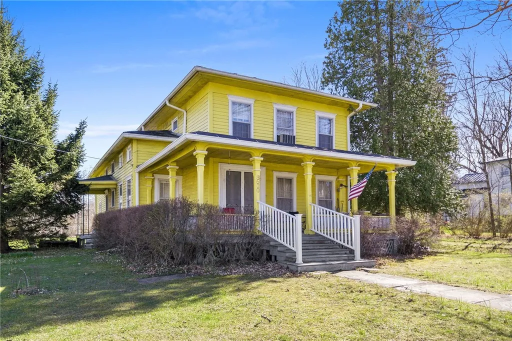 This is your chance to own one of the first five original homes built in Interlaken! Beautiful, historic details and located within a couple minute walk to everything in the Interlaken village (gym, restaurant, school, etc). This three bedroom home also features a spacious and updated bathroom, a large kitchen which is open to the family room area, a formal dining room, a laundry room/pantry, a quaint sunroom, bonus area/office and a ton of unfinished attic space that could be transformed. The outdoor space is lovely with a massive, wrap-around, covered porch, a large 2 story, detached garage, a shed, and a lovely, flower lined sidewalk to your sizable porch steps. All of this on a 0.65 acre lot so there is plenty of space for gardening and activities. Features like the 2 story formal entry with curved staircase are classic representations of the time period. All of this in a quiet location yet still only 7 minutes to Trumansburg, 23 minutes to Ithaca, and less than 30 minutes to Geneva or Seneca Falls!