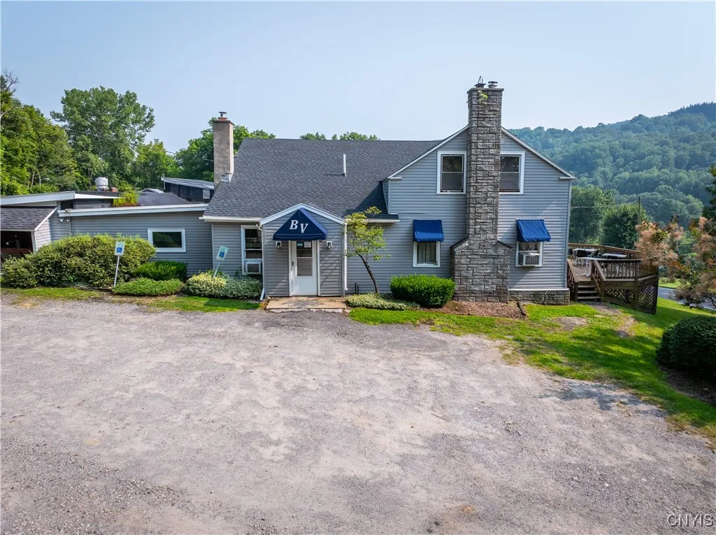 Welcome to the Bella Vista Restaurant, a long-standing staple in the Mohawk Valley, ideally situated just outside the charming City of Little Falls and minutes from two convenient exits on the NYS Thruway. Owned and operated by the same dedicated proprietor for over 30 years, this well-established and successful business is now ready for its next chapter. Perched on four scenic acres, Bella Vista offers incredible flexibility for investors, entrepreneurs, or dreamers looking to own a destination property. The restaurant seats over 80 guests, with a layout that caters to everything from intimate private dinners to large group gatherings and live entertainment. Guests can dine beside one of two cozy wood-burning fireplaces or take in breathtaking views from the expansive outdoor deck. The bar area includes ample seating, a well-appointed service station, and a fully equipped commercial kitchen—everything you need to continue operating seamlessly from day one. The second floor features living quarters ideal for an owner-occupant, staff housing, or conversion to guest accommodations. Not looking to run a restaurant? This unique property is brimming with alternate possibilities. With some renovation, it could become a private residence, an Airbnb, or a charming bed & breakfast, all with year-round panoramic views and proximity to the historic Erie Canal and local attractions. Recent upgrades completed in July 2024 include a major roof replacement, a restructured main entrance, and updates to the plumbing system—bringing added value and peace of mind to future owners. To top it off, the property also includes a barn/garage for storage or future expansion. Whether you’re continuing a restaurant legacy or reimagining the space entirely, Bella Vista is a rare opportunity you won’t want to miss.
