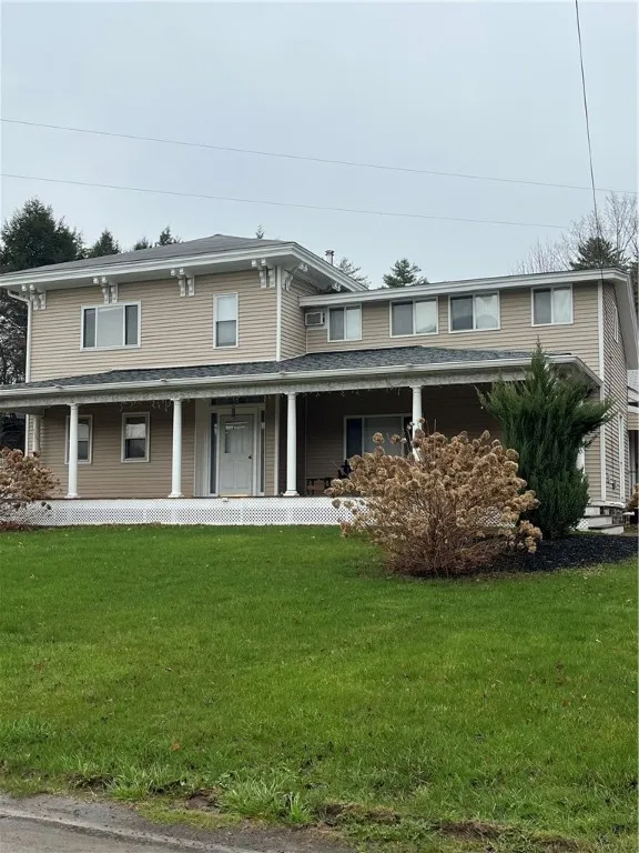 You'll love the mountain and valley views from the extra large porch, living room, and 3 of the bedrooms of this beautifully updated and lovingly kept farmhouse. This 4 bedroom, 3 bathroom, light drenched home with pastoral views from every room, has loads of space for the whole family. This home is located on a quiet, paved, country road yet is only 10 minutes from every convenience of Oneonta. The property is just over 6 acres of mixed open and wooded land, including a stunning creek as well as a fenced in garden area and chicken coop. The open concept kitchen, dining and living room area features hardwood floors and opens to a large private fenced backyard with a stone patio. Also located on the first floor are two bedrooms, two full baths and laundry. Upstairs you will find two large bedrooms including the primary suite, showcasing original wide-plank hardwood floors and en-suite bath, with steam shower, heated towel bars and private second story balcony (perfect for a hot tub under the stars). To top it off this home has an additional spacious room with a pellet stove that can serve as a fifth bedroom, home office, art or yoga studio, or family room. The paved driveway offers ample parking and there is an attached 3 car carport leading into a workroom/mudroom offering additional storage. This house has all new windows, wiring, heat systems and interior walls that make this home modern, comfortable and efficient. Heating options include wood, propane or oil - your choice!