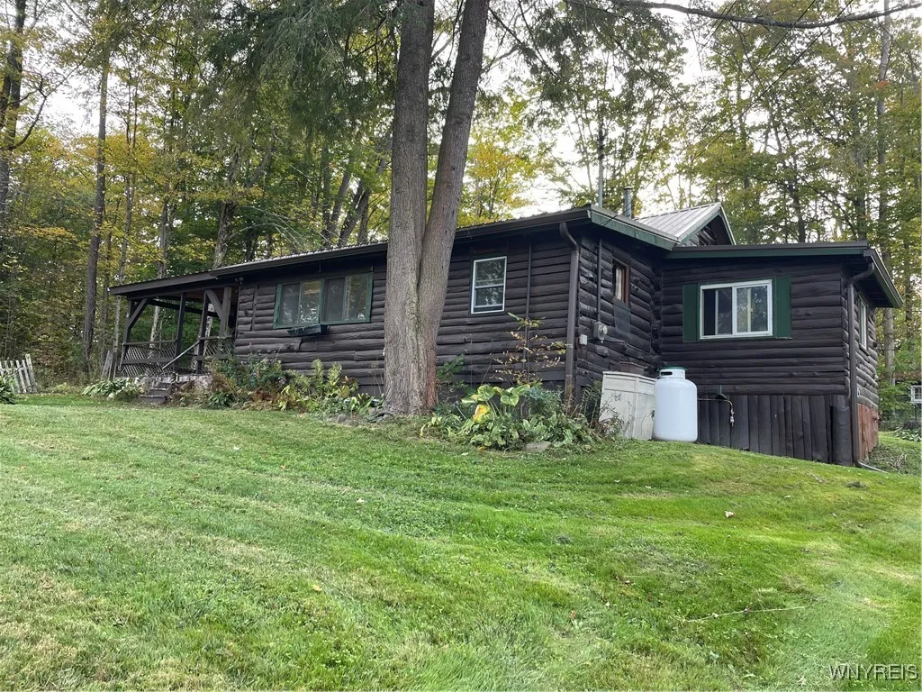 Welcome to Java Lake. One of the original Log Cabins at the lake with a large lot just under an acre. This One bedroom One bath features a Large great room with a stone fireplace. This home features a breakfast bar and plenty of storage space. On the property there are two outbuildings and plenty of room for a garden or other outdoor activities. Go for a swim on the beach, or fishing, boating ( no motors) or a hike in the woods. Plenty of parking spots for guests or family .