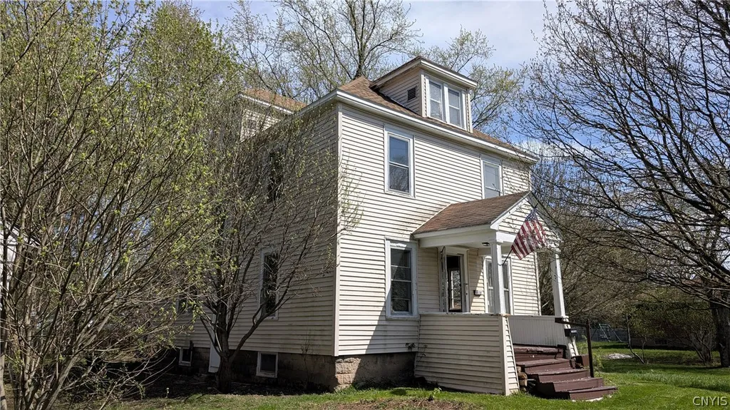 Welcome to 412 Edgerton Street in the Village of Minoa! This spacious colonial offers a fantastic opportunity to bring your vision to life and build equity. Situated on nearly a half-acre lot, the property features a two-car detached garage and over 1,900 square feet of living space. The flexible floor plan provides a variety of options to suit your needs. Just off the main entry is a room with a closet that could serve as a fifth bedroom, home office, or den, along with the convenience of a first-floor full bath. Upstairs, you’ll find four additional bedrooms, including one with what appears to be a mini kitchen—ideal for extended living arrangements or creative use. The main level also includes a formal dining room, a generously sized eat-in kitchen, and a mudroom or storage area that leads to a screened-in porch overlooking the backyard—perfect for enjoying the outdoor space. Recent updates add value and peace of mind, including a newer 200-amp electrical service, newer natural gas hot water tank, and a new gas range in the kitchen. With solid bones, great space including a full walk-up attic, and endless potential, this home is a wonderful opportunity for investors or buyers looking to customize a property to their taste. Please submit Offers before offer deadline, April 27th, Monday 7pm