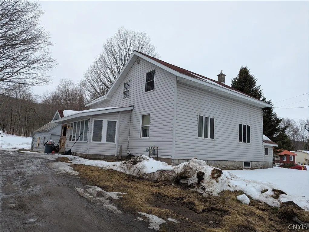 This home is ready for a new owner. The home has an enclosed side porch. From there, walk into a formal dining room with a full bath off. Also included on the first floor is the kitchen, living room, laundry area and a first floor bedroom. Second level has two additional bedrooms, a large landing at top of stairs and a half bath. Home is efficiently heated with Buderas furnace, fueled by natural gas. Outside is a one-car detached garage and large barn for storage. All of this is located on a large 4.5 acre parcel. Home is being sold AS IS - owner will remove her personal items, but will not clean out barn.
