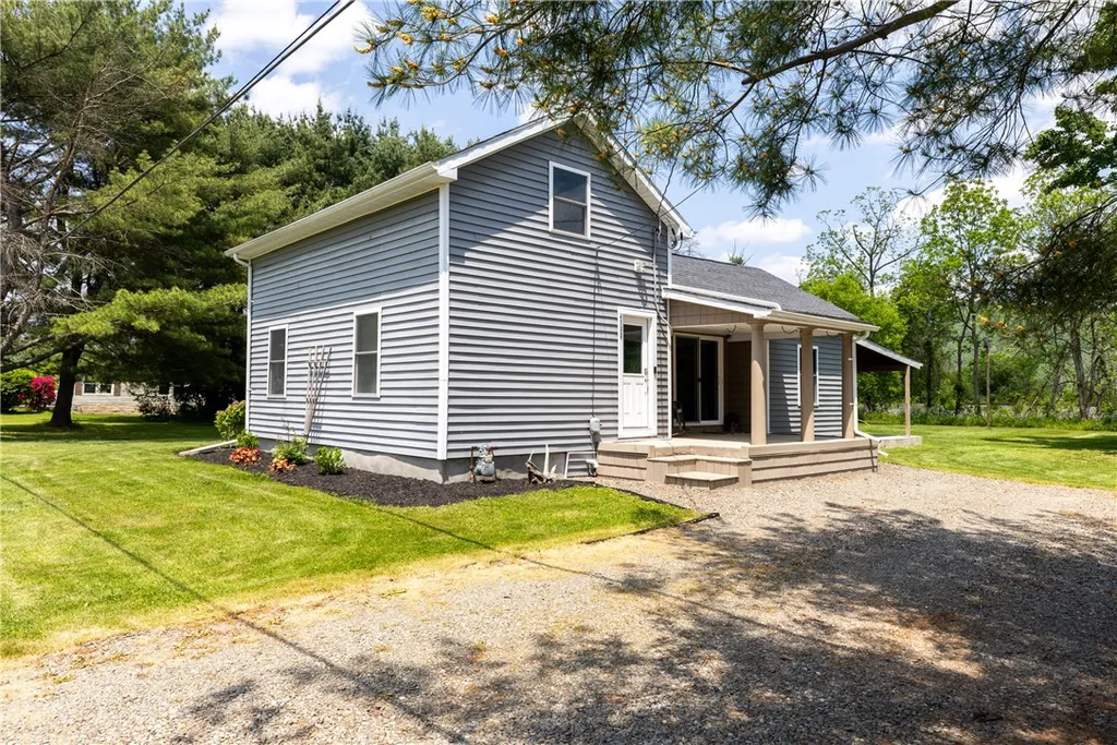 This 3-bedroom 1 bathroom home has everything to check off all your boxes. This home has been completely renovated inside and out. The first floor offers an open concept layout with a brand-new kitchen, and bathroom. The kitchen has new quartz countertops, stainless steel appliances, and a brand new island to match. For the book lovers this home also has a new inwall bookshelf. The bathroom has also been beautifully redone with a brand-new tiled shower and shower bench to match. Upstairs you will find a roomy loft style master bedroom. Not to stop there the outside has been completely redone as well with a new roof, siding, windows and doors. This home also has a new furnace, hot water tank, water pump, and all new electric ran inside and out. There is a breaker box ran to back patio set up for a hot tub to enjoy. The pool will remain with the property. This home requires nothing but a move in.