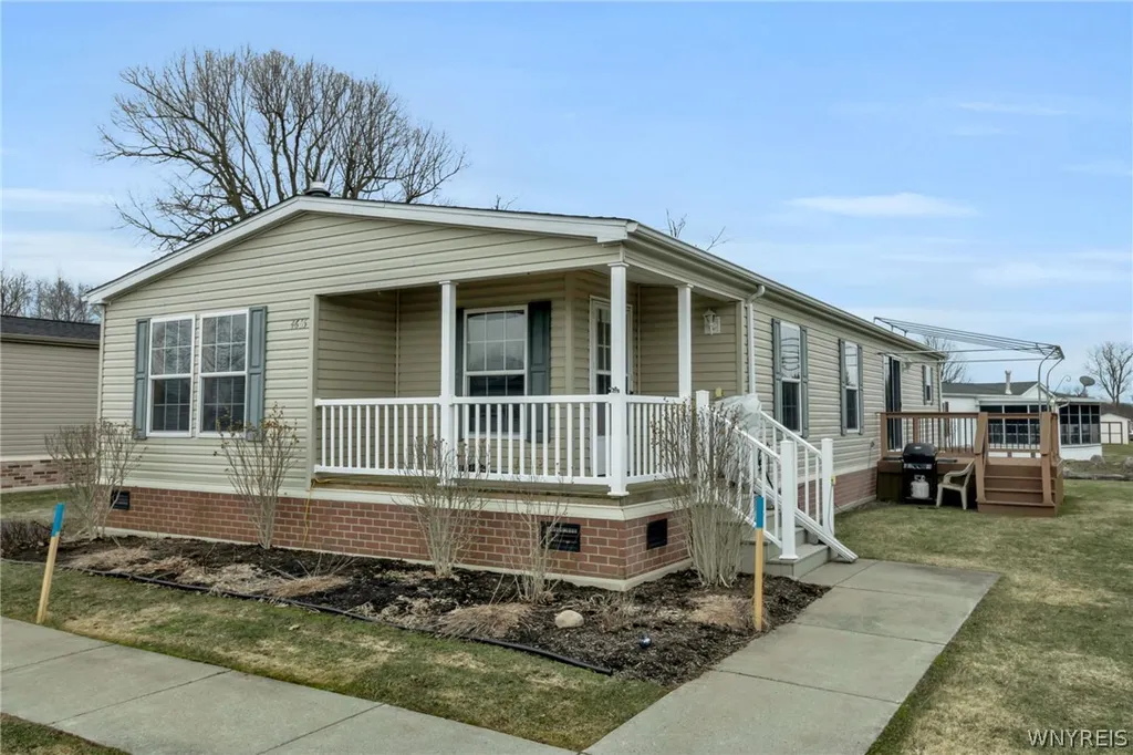 Tucked away within a welcoming 55+ community, this charming 2-bedroom, 2 full bath home offers the perfect blend of comfort, space, and a peaceful lifestyle. Inside, you’ll find a spacious primary suite featuring a walk-in closet and a full bath with a walk-in shower and double sinks. The open floor plan showcases a large living room and an eat-in kitchen with a center island, offering ample counter and cupboard space, along with a bright morning room, perfect for starting your day. A sliding glass door leads to a deck overlooking the private, tree-lined lot. Enjoy outdoor living with not one, but two decks complete with a canopy ideal for relaxing or entertaining plus a large shed for additional storage. Additional highlights include central air, a whole house generator (2021), furnace (2021), and roof (2022). Residents also enjoy access to a clubhouse with a full kitchen, perfect for hosting larger gatherings. One dog under 50 lbs is permitted, cable is included, and all buyers must be approved by the park.